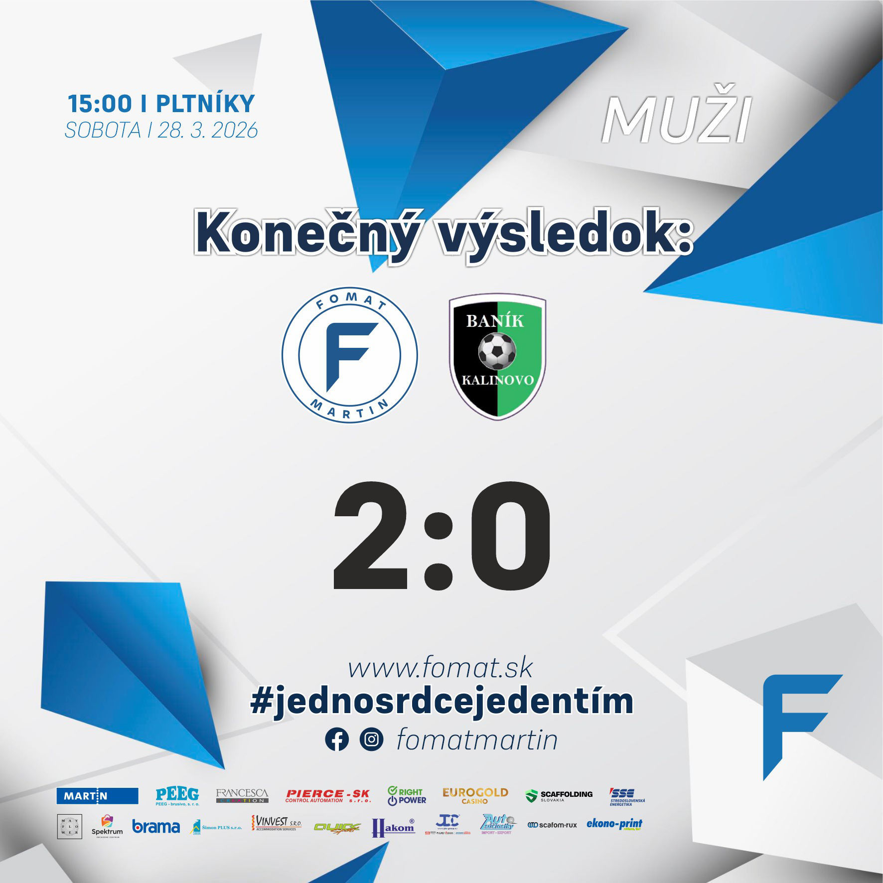 Fomat Martin – TJ Baník Kalinovo 2:0 /1:0/