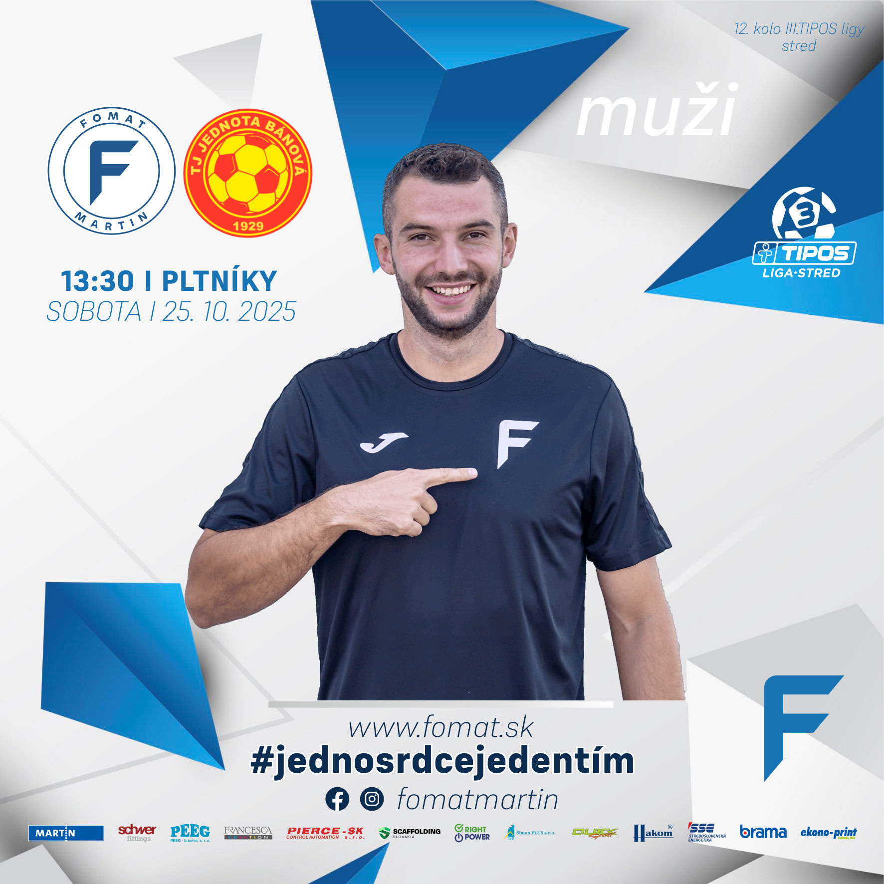 V sobotu sa na Pltníkoch odohrá aj predposledné kolo jesennej časti 3. Tipos ligy stred. Naši chlapci v ňom budú hostiť od 13:30 v derby zápase tím TJ Jednota Bánová. Po výhre s Kysuckým budú chcieť Martinčania uspieť aj v tomto zápase, no bude to pre viacero z nich pikantný duel – veď náš tréner Jozef Schmied Bánovú v minulosti viedol a viacero z našich hráčov v nej v minulosti hrávalo. Ako sa vraví, derby nemá favorita /o čom sme sa aj v minulosti viackrát presvedčili/ a naši chlapci tak budú potrebovať aj Vaše hlasivky. Srdečne Vás na toto stretnutie pozývame, pripravili sme si pre Vás v polčasovej prestávke aj žrebovanie o zaujímavé ceny od našich partnerov. Časť zo vstupného bude použitá na charitatívnu pomoc pre oddelenie detskej onkológie UNM. MARTIN DO TOHO! Spojme sa pre šport, spojme sa pre MARTIN!